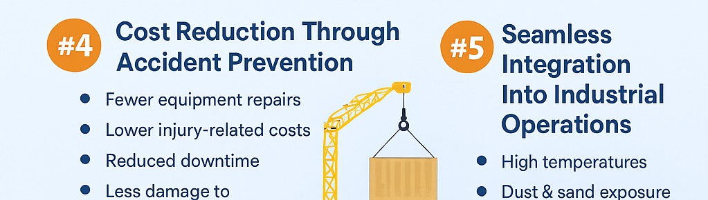 This makes them suitable for rigs, refineries, heavy lifting yards, shutdown projects, and industrial warehouses. The systems run continuously and provide real-time visibility without disrupting operations.